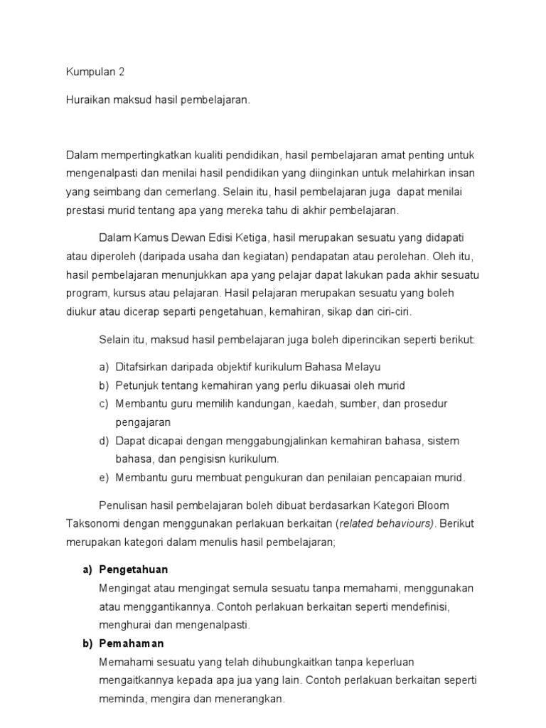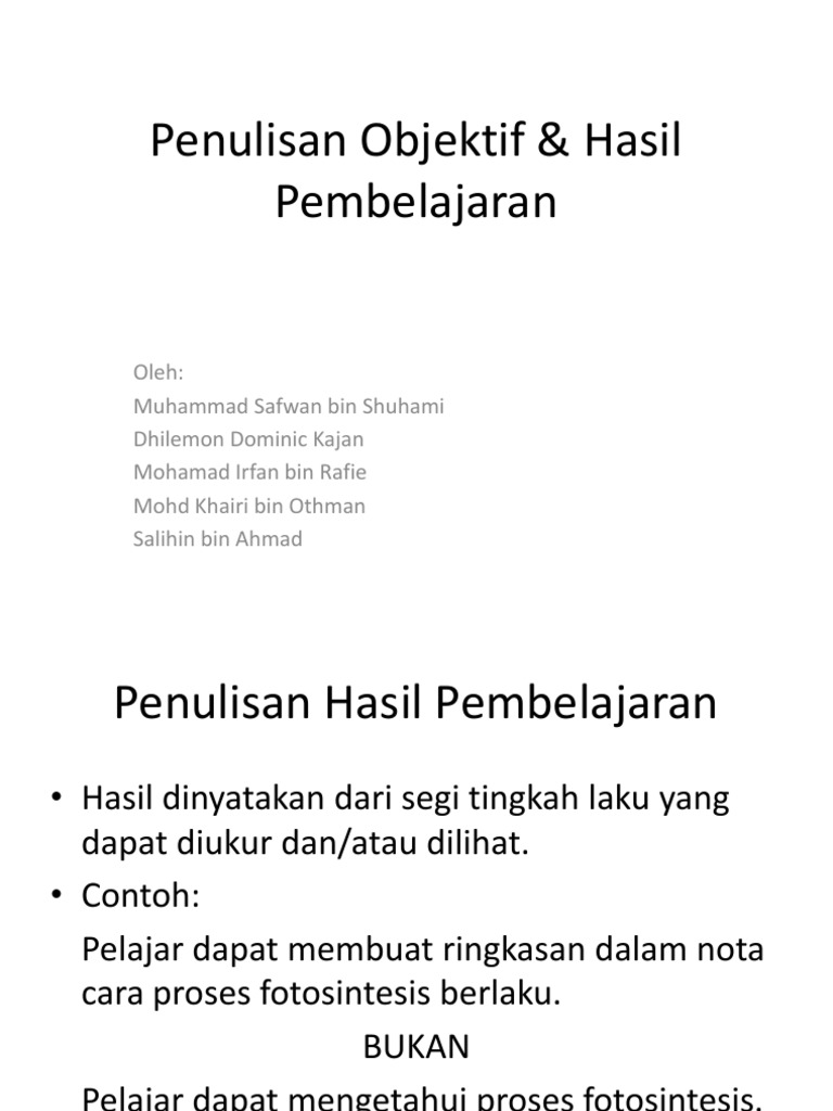 Penulisan Objektif Hasil Pembelajaran Pdf