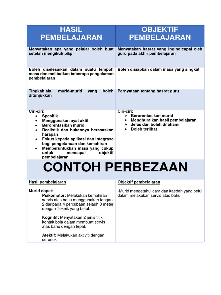 Perbezaan Antara Hasil Dan Objektif Pembelajaran Pdf